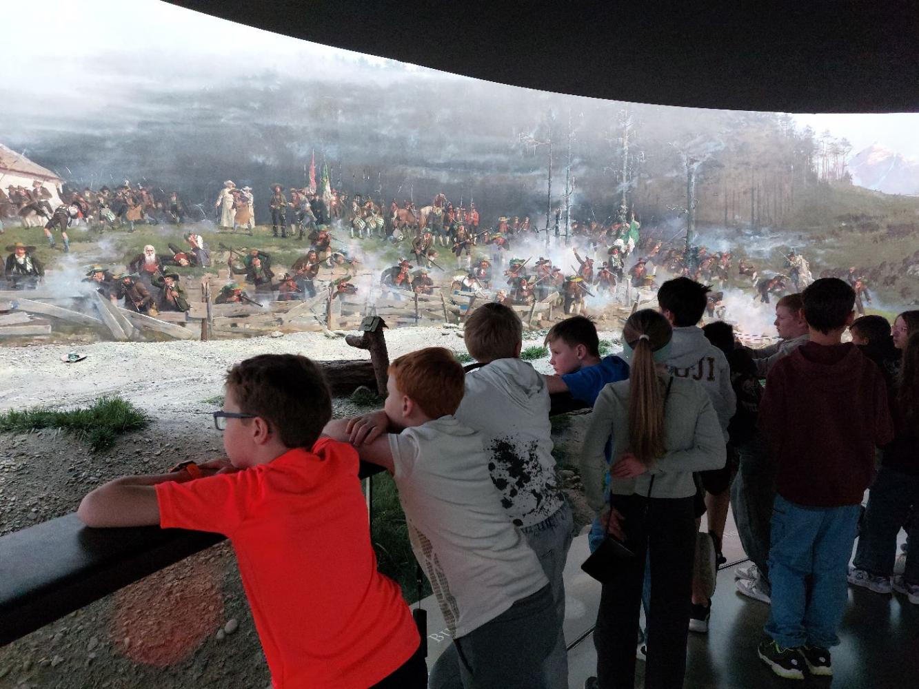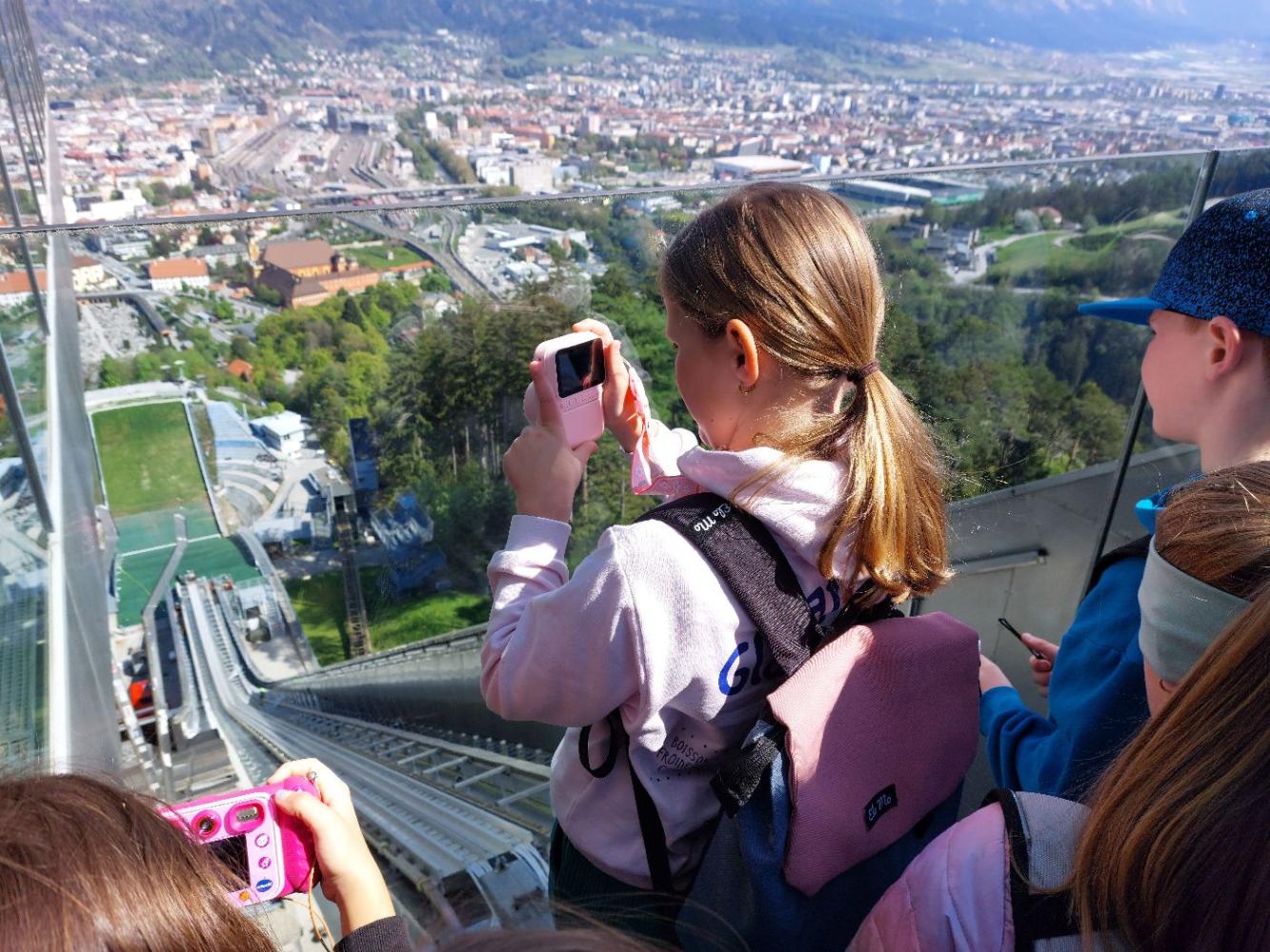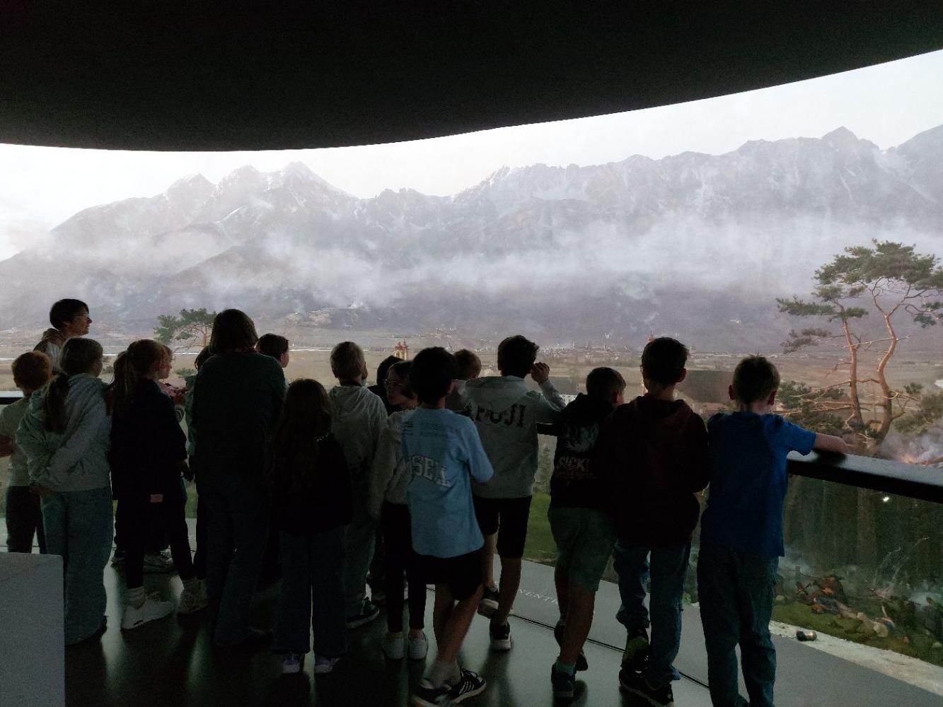 Bereits um 6:01 Uhr starteten die Kinder mit ihren beiden Lehrerinnen mit dem Bus in Strassen Richtung Landeshauptstadt. Trotz der frühen Abfahrt war die Vorfreude auf den spannenden Tag bei allen groß. Nach der Ankunft in Innsbruck führte ein gemeinsamer Spaziergang hinauf zum Bergisel. Dort erhielten die Kinder eine interessante Führung durch das Tirol Panorama, wo sie viel Wissenswertes über die Geschichte Tirols und das beeindruckende Riesenrundgemälde erfuhren. Ein weiteres Highlight war die Fahrt mit der Bahn hinauf auf die Schanze, von wo aus die Schülerinnen und Schüler einen großartigen Ausblick über Innsbruck genießen konnten.