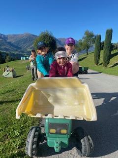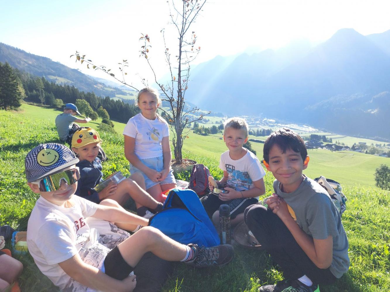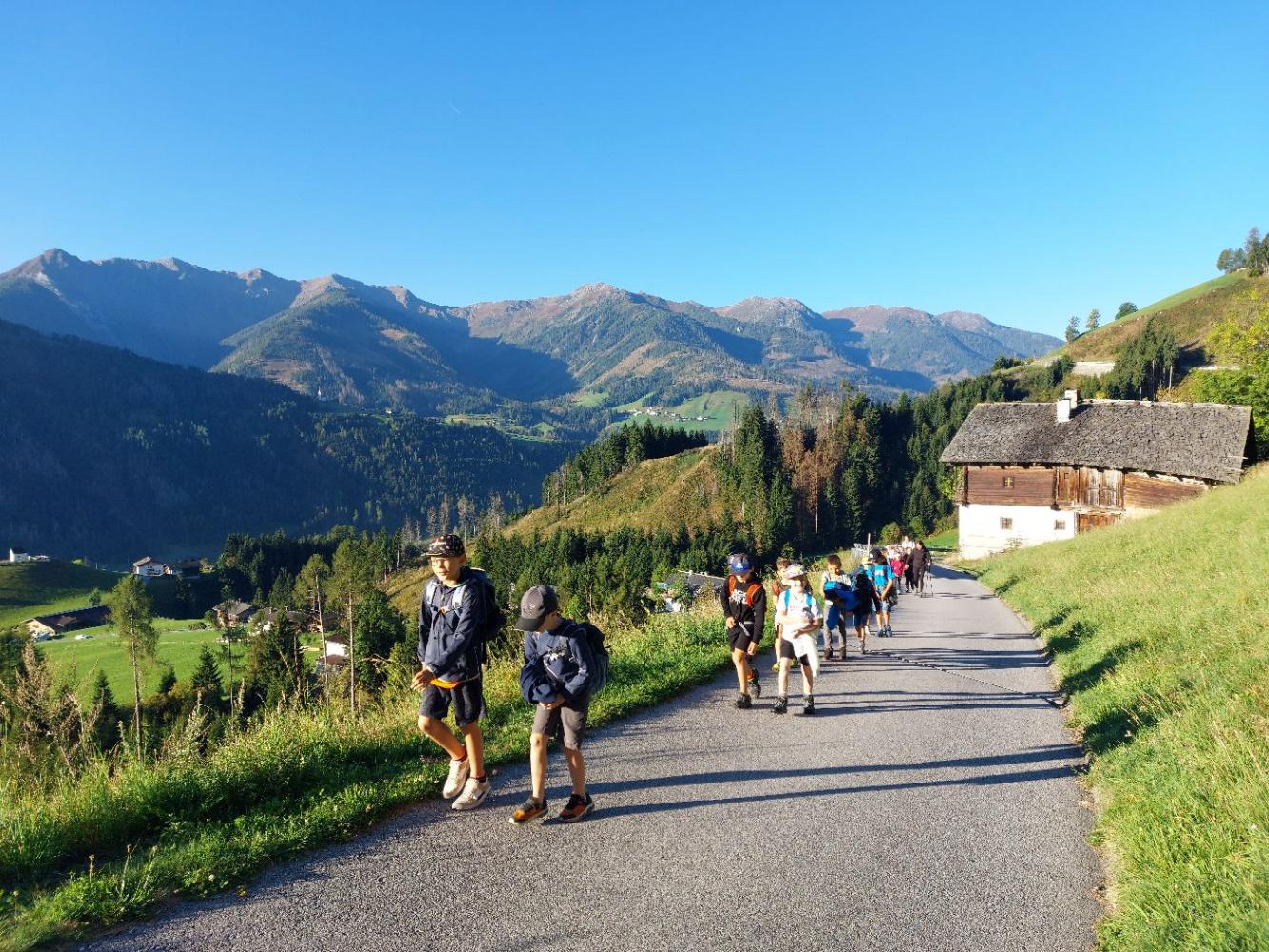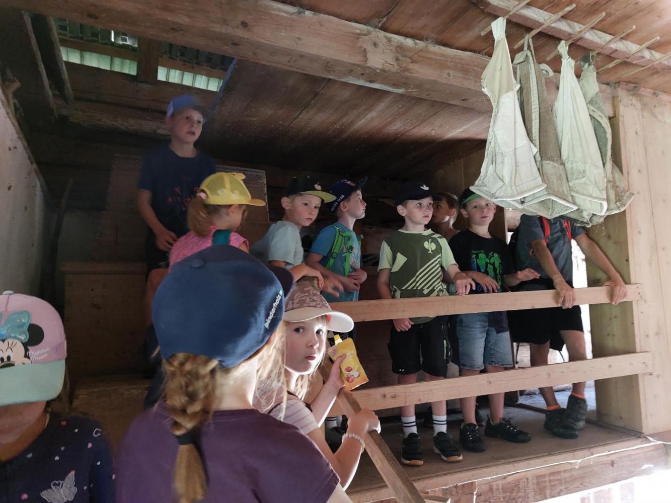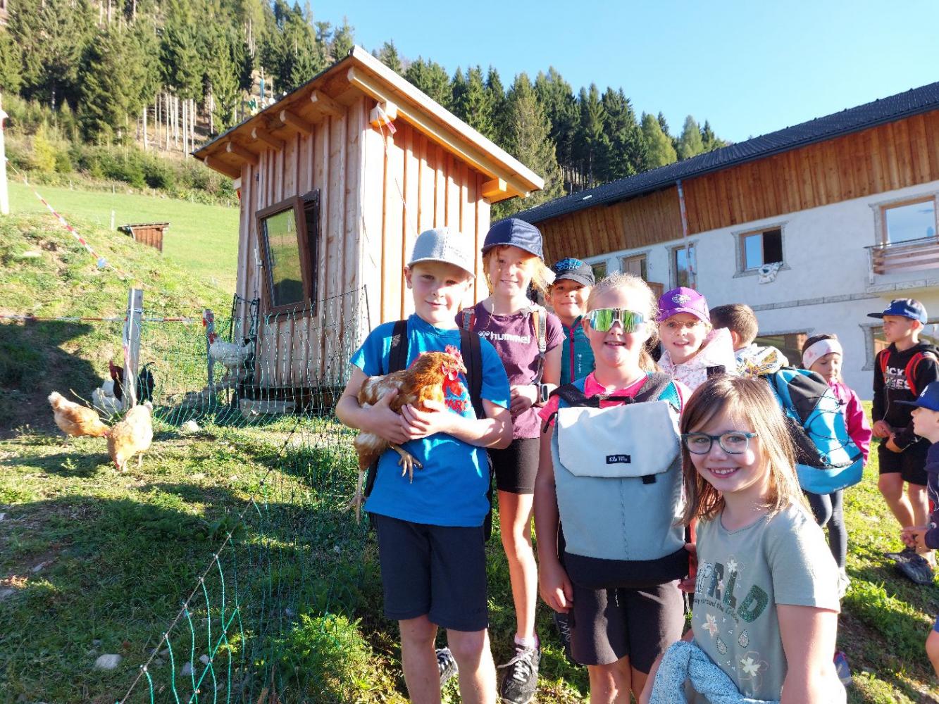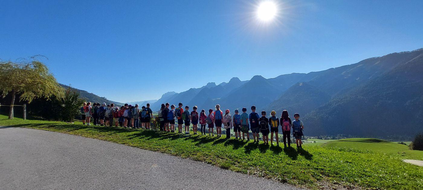 Wie könnte ein Schuljahr besser starten, als mit einem gemeinsamen Wandertag. Am 19. September marschierten wir bei herrlichem Herbstwetter nach Fronholz. Dort durften sich die Kinder am Hof ihres Mitschülers Emanuel beim Fußballspielen, Trettraktor fahren, beim Sand spielen, bei der Affenschaukel oder beim Hennen füttern austoben. Anschließend führte uns unsre Wanderung über Bichl nach Heising zu den "Mühlelen". Franz Valtiner erzählte den Kindern dort, wie eine Mühle früher funktioniert hat. Nach diesen interessanten Einblicken, marschierten wir zurück zur Schule. Es war ein rundum gelungener Wandertag, der uns noch lange in Erinnerung bleibt.